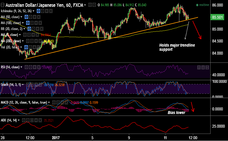 - Support levels - 85.46 (5-DMA), 85.40 (trendline), 85.18 (1H 200-SMA), 84.89 (20-DMA)