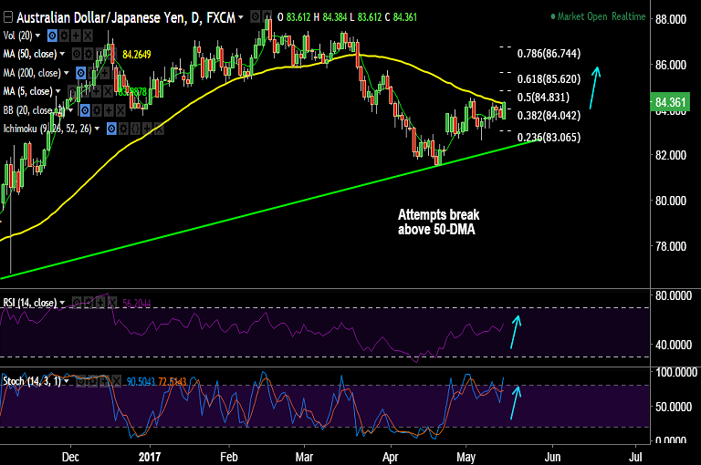 - The pair is hovering around 50-DMA at 84.26, decisive break above will see further upside.