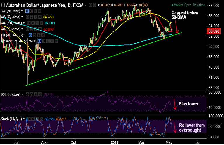 - AUD/JPY extends slump for 3rd straight session after upside halted shy of 50-DMA resistance currently at 84.57.