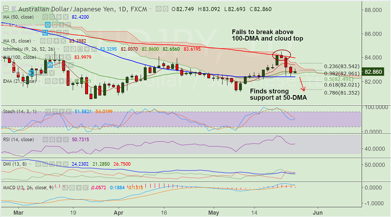 - The pair finds support at 50-DMA and we see further weakness only on break below.