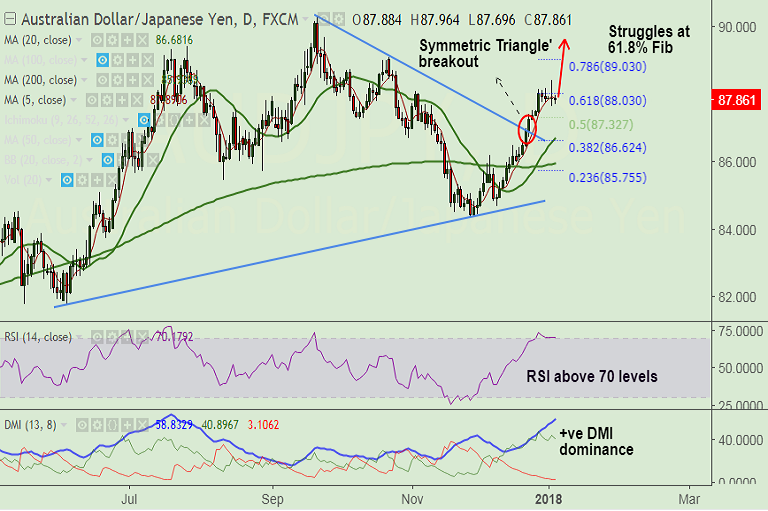 - On the lower side, daily cloud at 87.32 is immediate resistance, break below to test 100-DMA at 87.10.