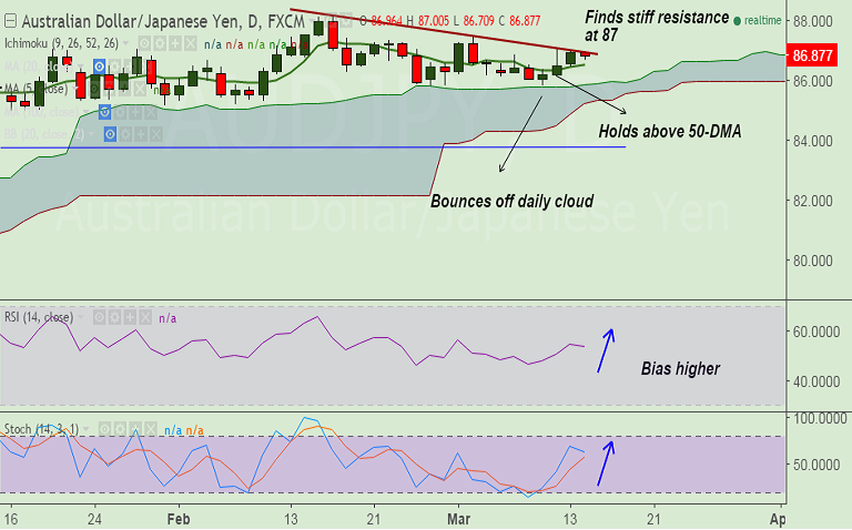 - Break above could see further upside, next immediate resistance above 87 lies at 87.48 (March 2 high).