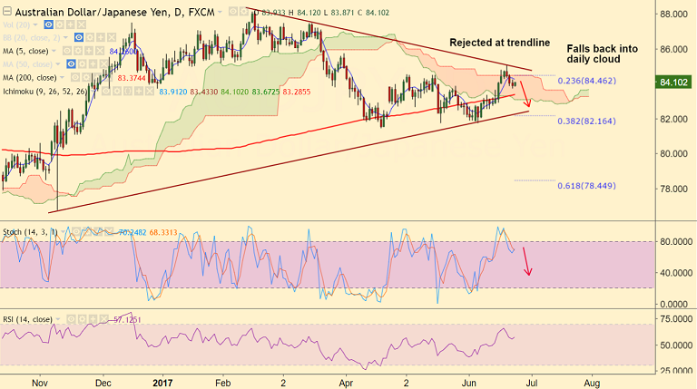 - Technically, the pair was rejected at major trendline resistance at 85 levels.