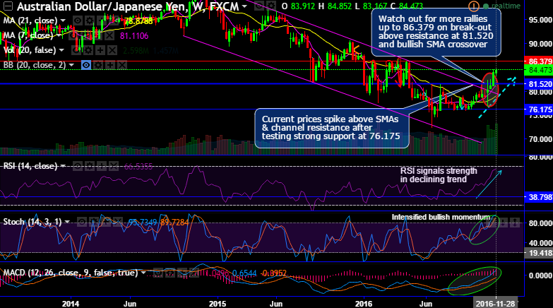 Watch out for more rallies up to 86.379 on break-out above resistance at 81.520 and bullish SMA crossover.