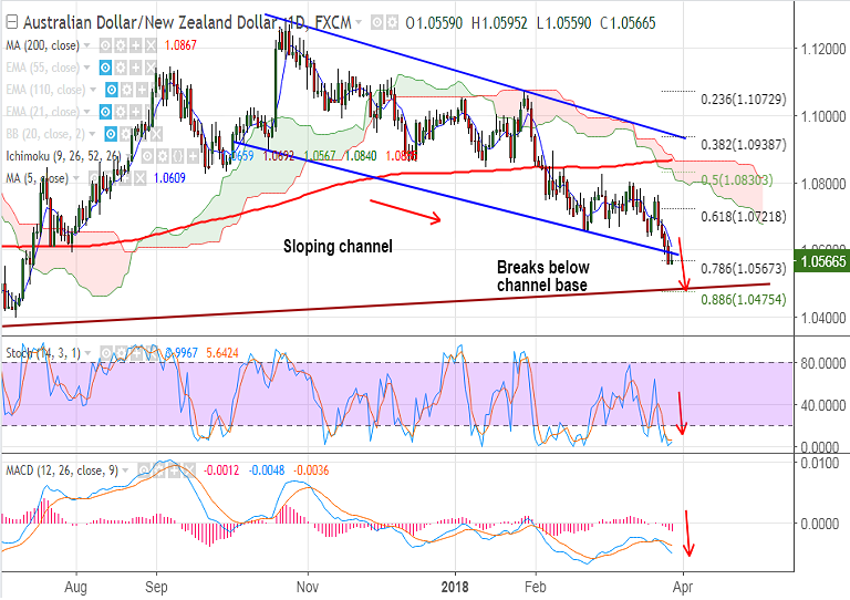 - AUD/NZD has shown a breach at channel base support at 1.0590, raising scope for further weakness.