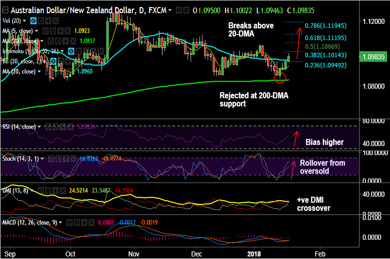 - AUD/NZD is extending break above 20-DMA, eyes 100-DMA at 1.1012.