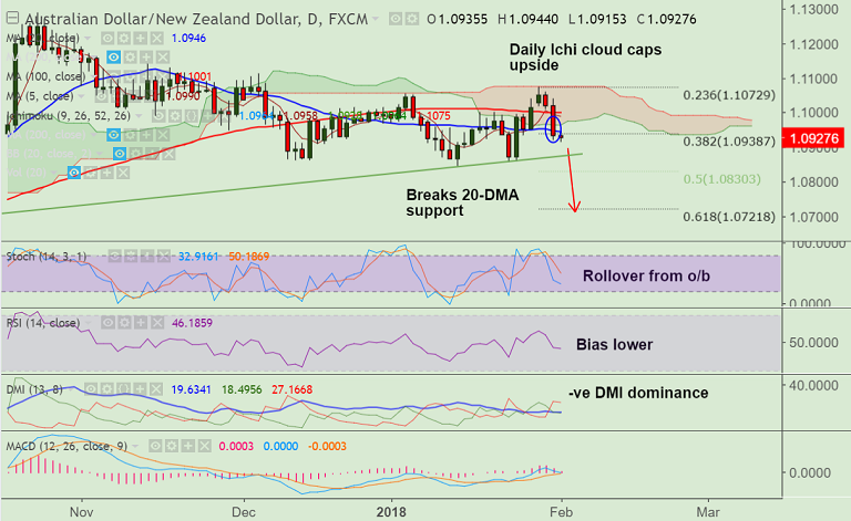 - AUD/NZD extended previous session's slump, dragged lower below 20-DMA, hit session lows at 1.0915.