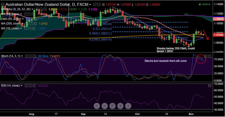 - 10&20 DMAs at 1.0685 and 1.0690 are strong supports on the downside, while above 200 DMA, 1.0796 (Nov 3rd high) is next hurdle on the upside ahead of 1.0849 (Nov 6th high).