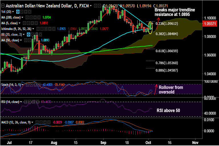 Resistance levels - 1.0954 (20-DMA), 1.0961 (23.6% Fib), 1.0978 (Sept 26 high)