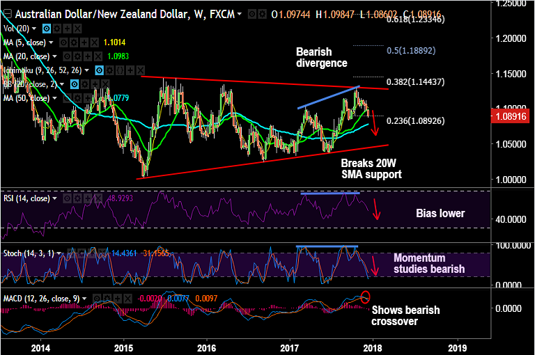 - AUD/NZD is extending break below 20W SMA at 1.0983, intraday bias bearish.