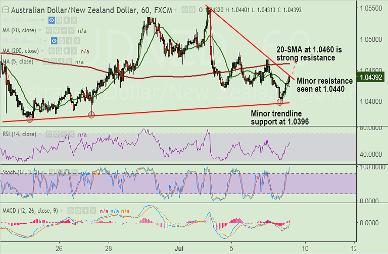 Resistance levels - 1.0460 (1H 200-SMA), 1.0478 (July 5 high), 1.05