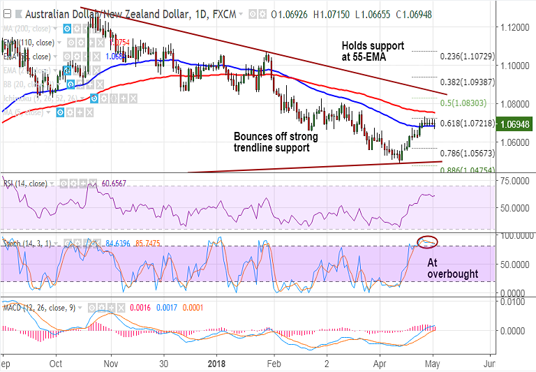 - AUD/NZD finds stiff resistance at daily cloud base and has also been capped at 61.8% Fib at 1.0721.