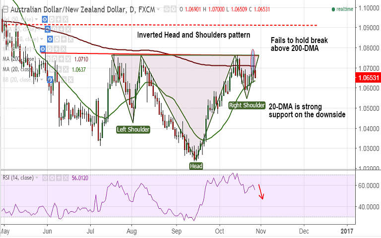 FxWirePro: AUD/NZD fails to hold gains above 200-DMA, intraday bias lower