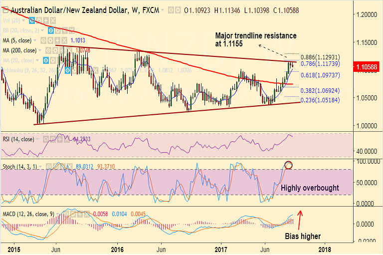 Resistance levels - 1.1082 (1H 200-SMA), 1.11, 1.1155 (trendline), 1.1175 (78.6% Fib retrace of 1.1429 to 1.0237 fall), 1.12