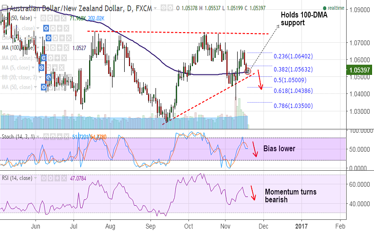 - AUD/NZD is struggling at 100-DMA support, intraday bias lower.