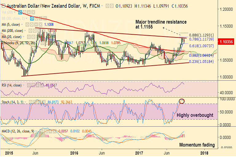 - On weekly charts the pair finds stiff resistance at 1.1155 (major trendline).