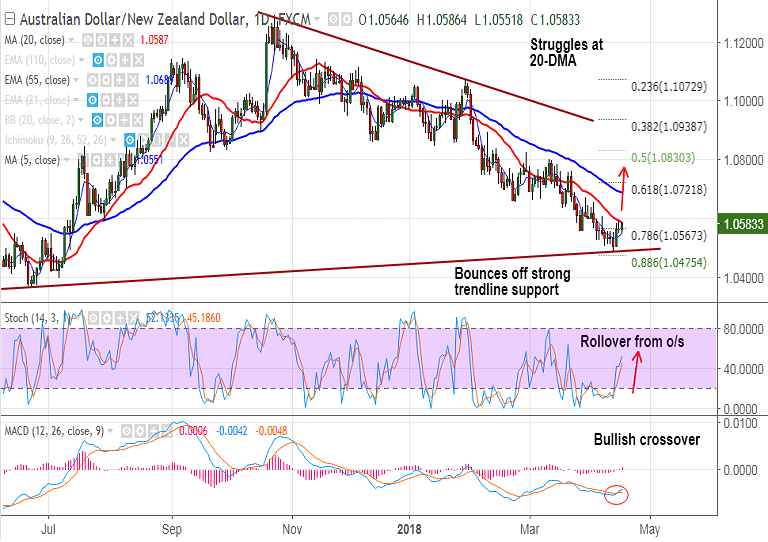 - AUD/NZD finds support at 5-DMA at 1.0552, we see minor weakness on break below.