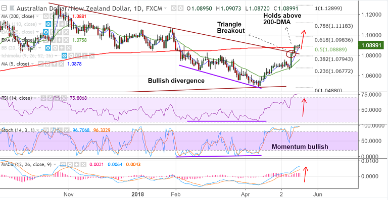 Resistance levels - 1.0881 (200-DMA), 1.09, 1.0983 (61.8% Fib)