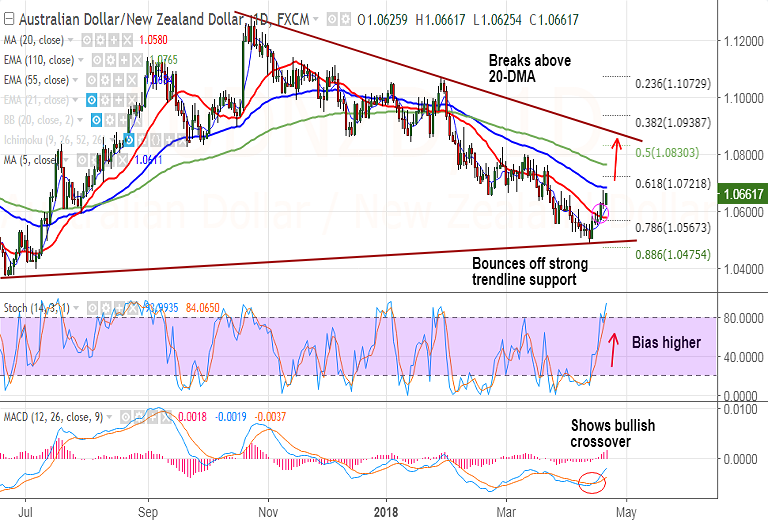Support levels - 1.0610 (5-DMA), 1.0580 (20-DMA), 1.0567 (78.6% Fib), 1.0495 (major trendline)