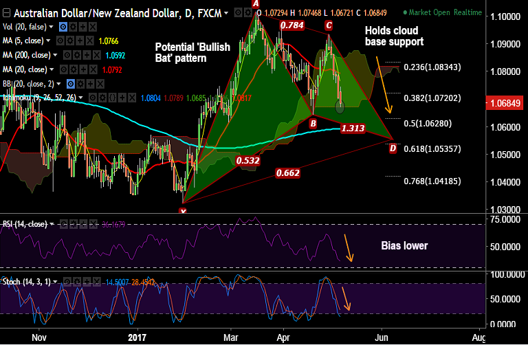 - The pair is currently holding support by daily cloud base at 1.0672 levels.
