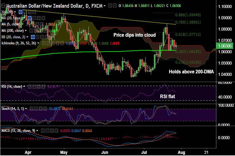 - The pair finds strong support at 200-DMA at 1.0611, break below to see further weakness.