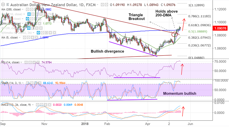 - AUD/NZD holds above 200-DMA, is on track to 61.8% Fib at 1.0984.