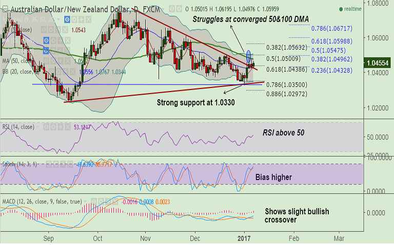 - 5-DMA offers strong support at 1.0429, break below will accentuate weakness, drag till 1.0350 likely.