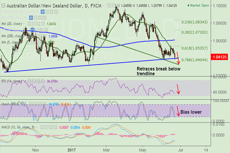 - The pair is trading with a major bearish bias and we see scope for reversal only on break above 20-DMA at 1.0474.