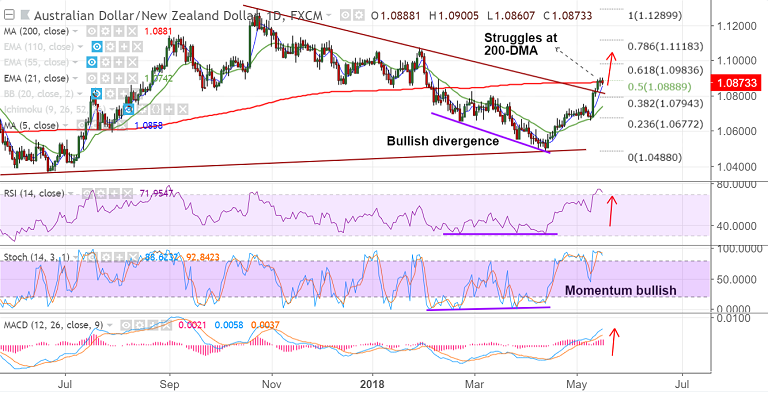 Resistance levels - 1.0881 (200-DMA), 1.09, 1.0983 (61.8% Fib)