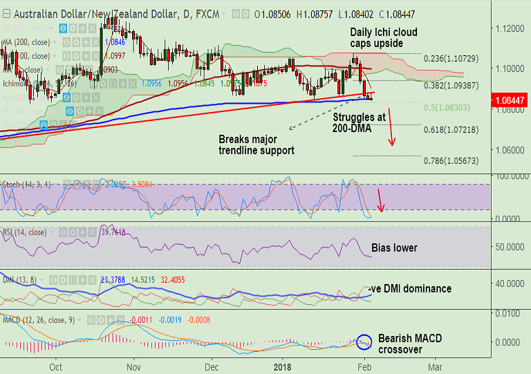 - Next bear target below 200-DMA lies at 50% Fibo at 1.0830 ahead of 61.8% Fib at 1.0721.