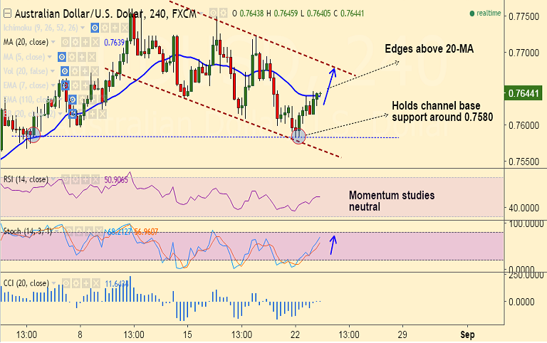 - On the downside supports are seen at 0.7625 (20-DMA), 0.76 and then 0.7583 (double bottom).