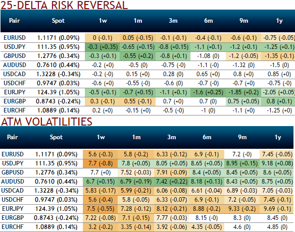 While delta risk reversal reveals divulge more interests in hedging activities for downside risks even though we see the positive shift in hedging arrangements. As a result, we can understand ATM puts have been costlier where the spot FX market direction of this pair is heading towards 0.74-75 or below technical levels. So, the speculators and hedgers for bearish risks are advised to optimally utilize the upswings and bid on 1-3m risks reversals that would encompass Fed’s June meeting.