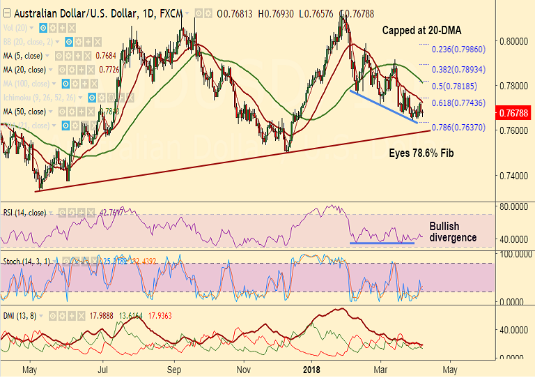 Recommendation: Good to short on rallies around 0.7680/90, SL: 0.7750, TP: 0.7640/ 0.76/ 0.7590.