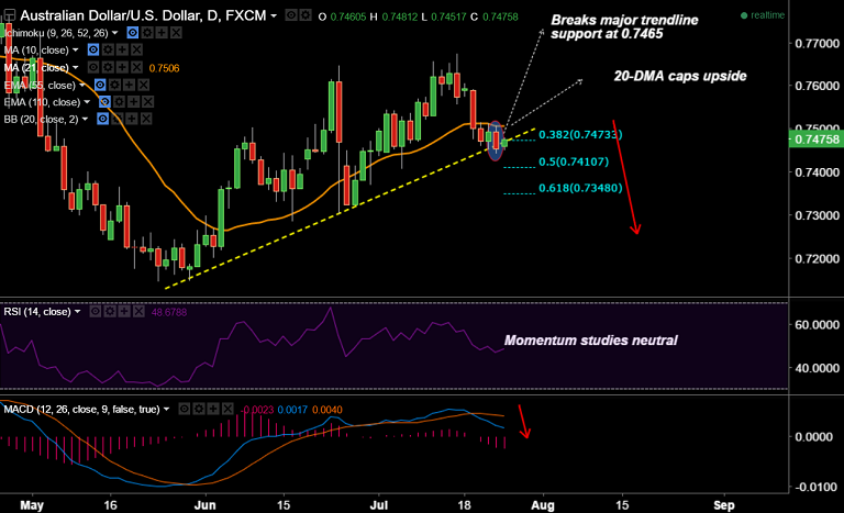 - Major resistance - 0.7506 (21-DMA), 0.7517 (July 20 high), 0.7543 (10-DMA).