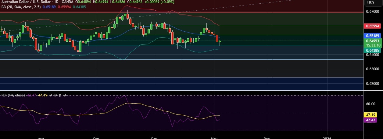 • AUD/USD consolidated around 0.6495 on Wednesday after Tuesday’s steep decline, consolidating within a narrow range