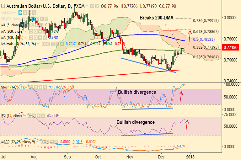 Resistance levels - 0.7740 (38.2% Fib), 0.7781 (100-DMA), 0.78
