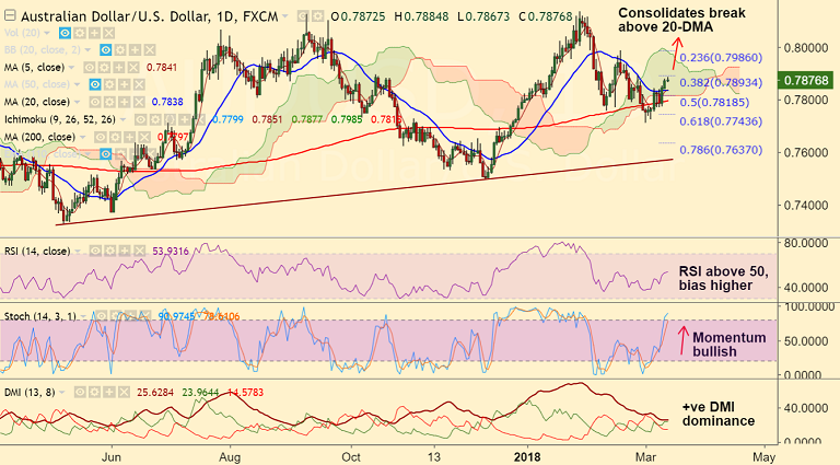 Support levels - 0.7841 (5-DMA), 0.7838 (20-DMA), 0.7797 (200-DMA)