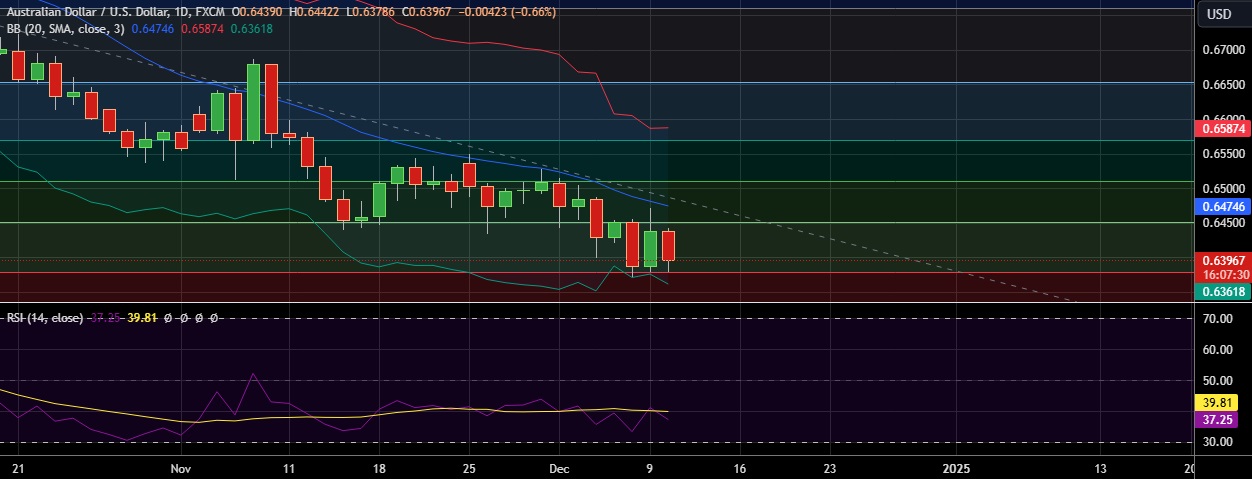 • AUD/ USD fell below 0.6400 level on Tuesday after Reserve Bank of Australia (RBA) decided to keep interest rates unchanged and adopting a more cautious and less aggressive tone.
