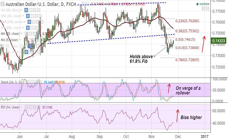 - AUD/USD finds strong support by 5-DMA currently at 0.7398, we see weakness only on close below.