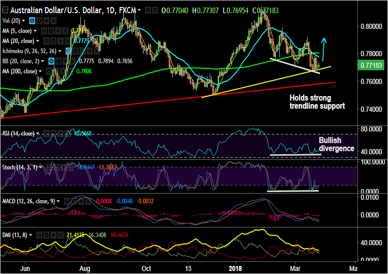 Resistance levels - 0.7775 (20-DMA), 0.7806 (200-DMA)