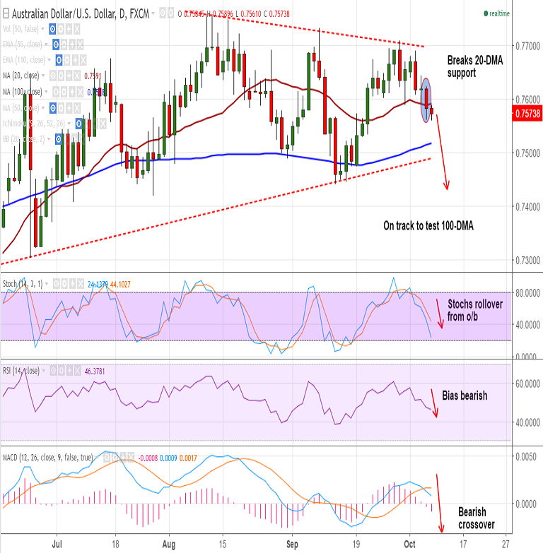 - Major resistance levels - 0.7591 (20-DMA), 0.7606 (50-DMA) , 0.7614 (5-DMA), 0.7645 (Oct 5 high)