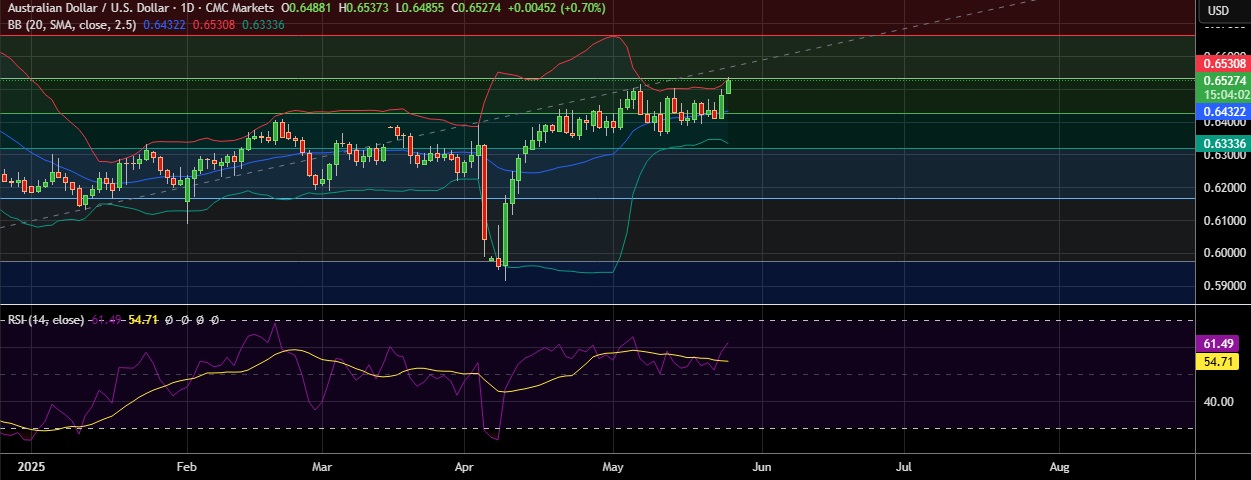 • AUD/USD rose to hit six month high on Monday as U.S. President Donald Trump's fresh tariff threats pressured the greenback.