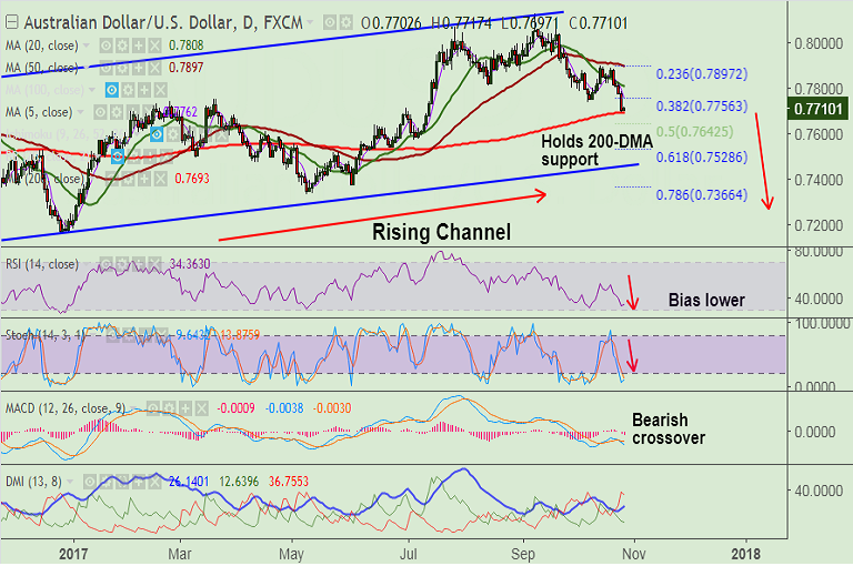 - The major has taken support at 200-DMA at 0.7693, we see further weakness on break below.