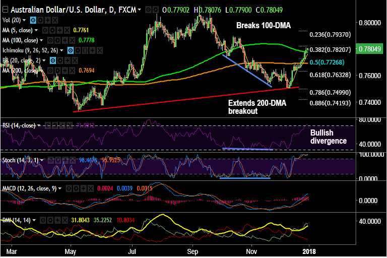 - AUD/USD closed above 100-DMA at 0.7778 on Thursday's trade. We see weakness only on retrace below.