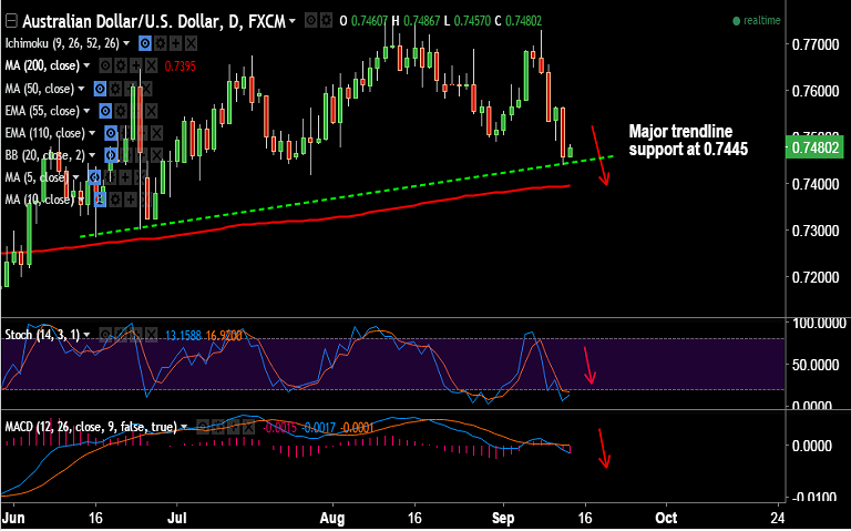 - Break below 0.7442 to see test of 200-DMA at 0.7394.