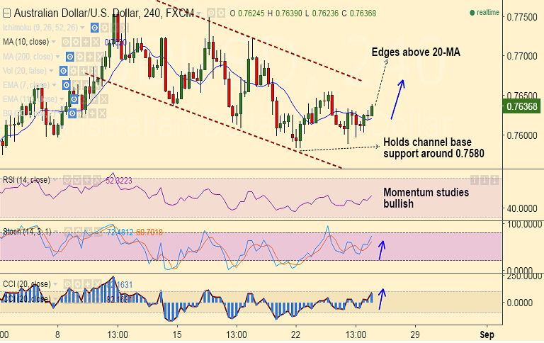 - On the upside, break above 20-DMA at 0.7637 could see upside upto 0.7723 and then 0.7750 (trendline).