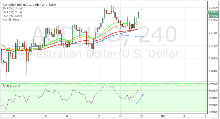 - To the upside, the strong resistance can be seen at 0.7237, a break above this level would take the pair towards next resistance level at 0.7291.