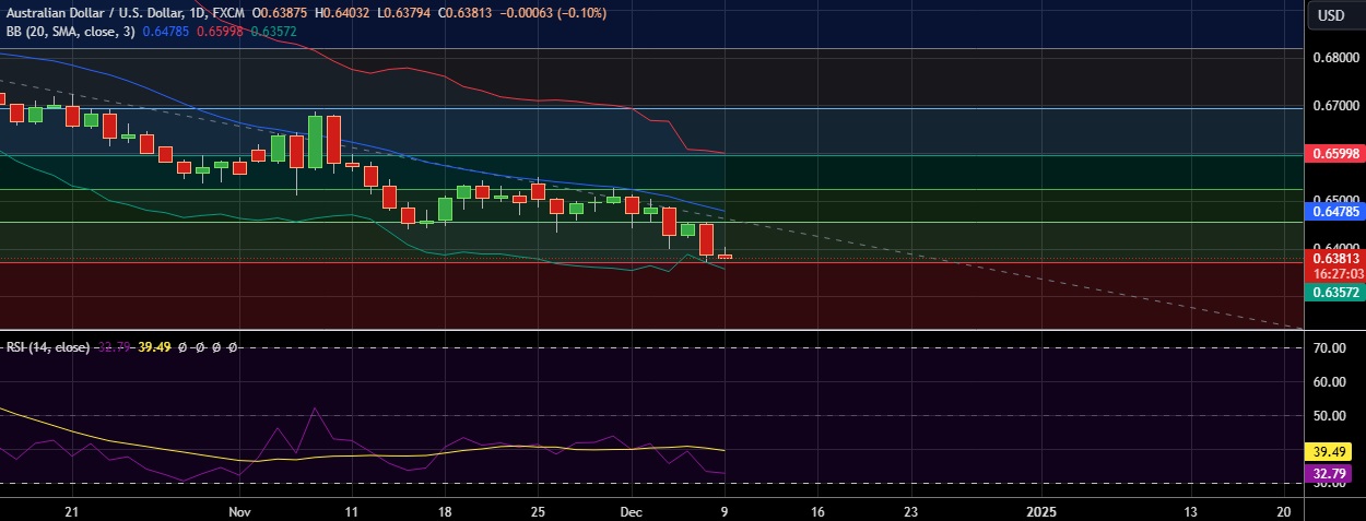 • At GMT 05:28, The Aussie was trading down 0.10% to $0.6381 after having dropped 2% last week.