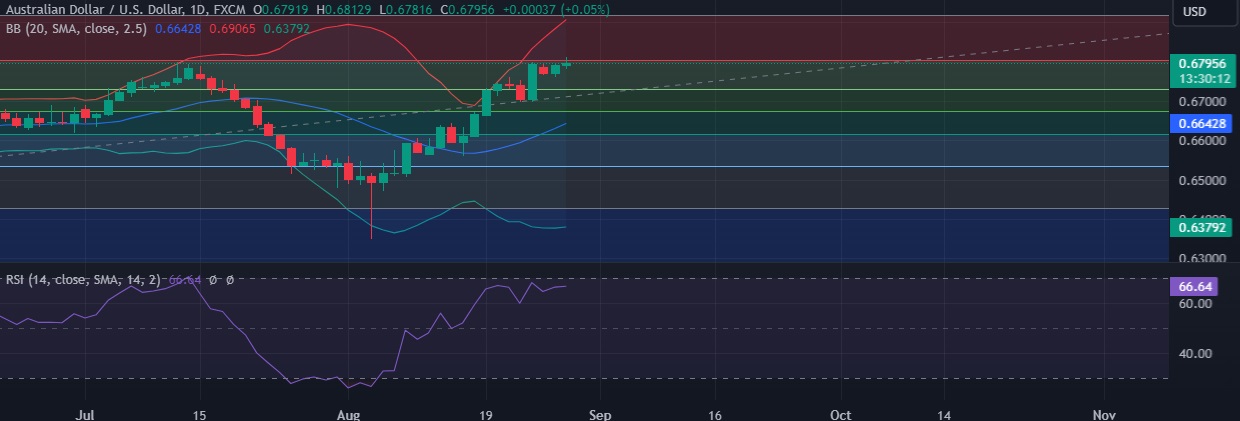 • Support is seen at 0.6764(Aug 27th low) and break below could take the pair towards 0.6731 (50%fib).