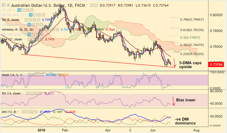 - AUD/USD recovery attempts were capped at 5-DMA, bias remains lower.